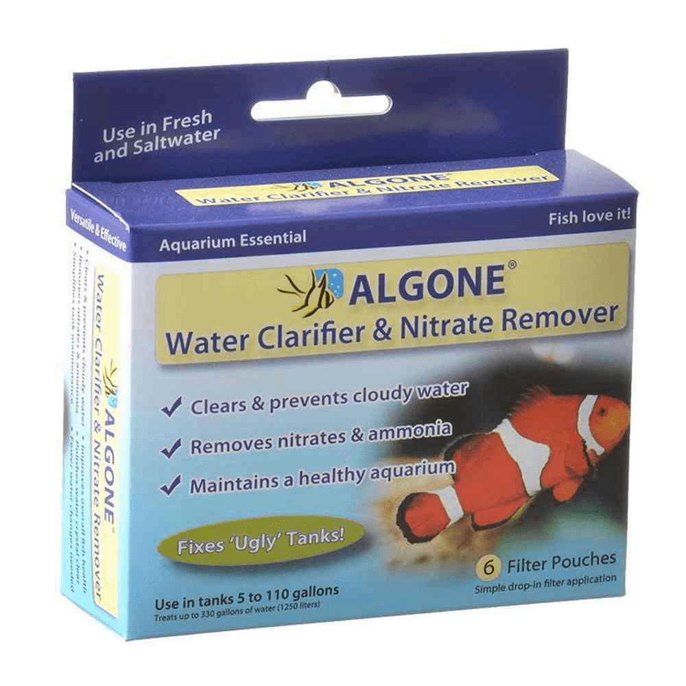 Algone is a filter supplement used to solve and prevent common aquarium problems. Algone fits any filter system and can be used in fresh and saltwater aquariums, including sensitive reef and plant tanks. All natural Algone clears cloudy aquarium water, lowers and removes excess nitrates and ammonia from the fish tank, and polishes the water to a crystal clear sparkle.