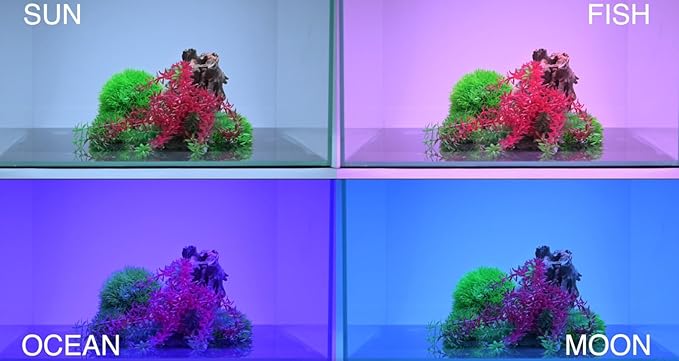 Built-in Timer for Natural Lighting Cycles: The built-in timer offers four sunrise-sunset options, allowing you to mimic the natural lighting cycles for your aquatic creatures. Additionally, you can activate the soothing moonlight setting for a tranquil nighttime ambiance.