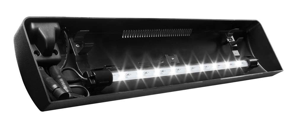 Aqueon LED Strip Lights are meant for use with glass covers or they can fit into existing Aqueon hoods. Strip lights are low-profile and use Aqueon Modular LED lamps available in a variety of colors. Each fixture comes preloaded with one Day White LED lamp with an expansion slot to add a second LED lamp. Comes with moon glow accent LED light and three-way switch to turn LED lights on, turn everything off or to turn the moon glow accent on. Ideal upgrade to an incandescent or fluorescent strip light fixture.