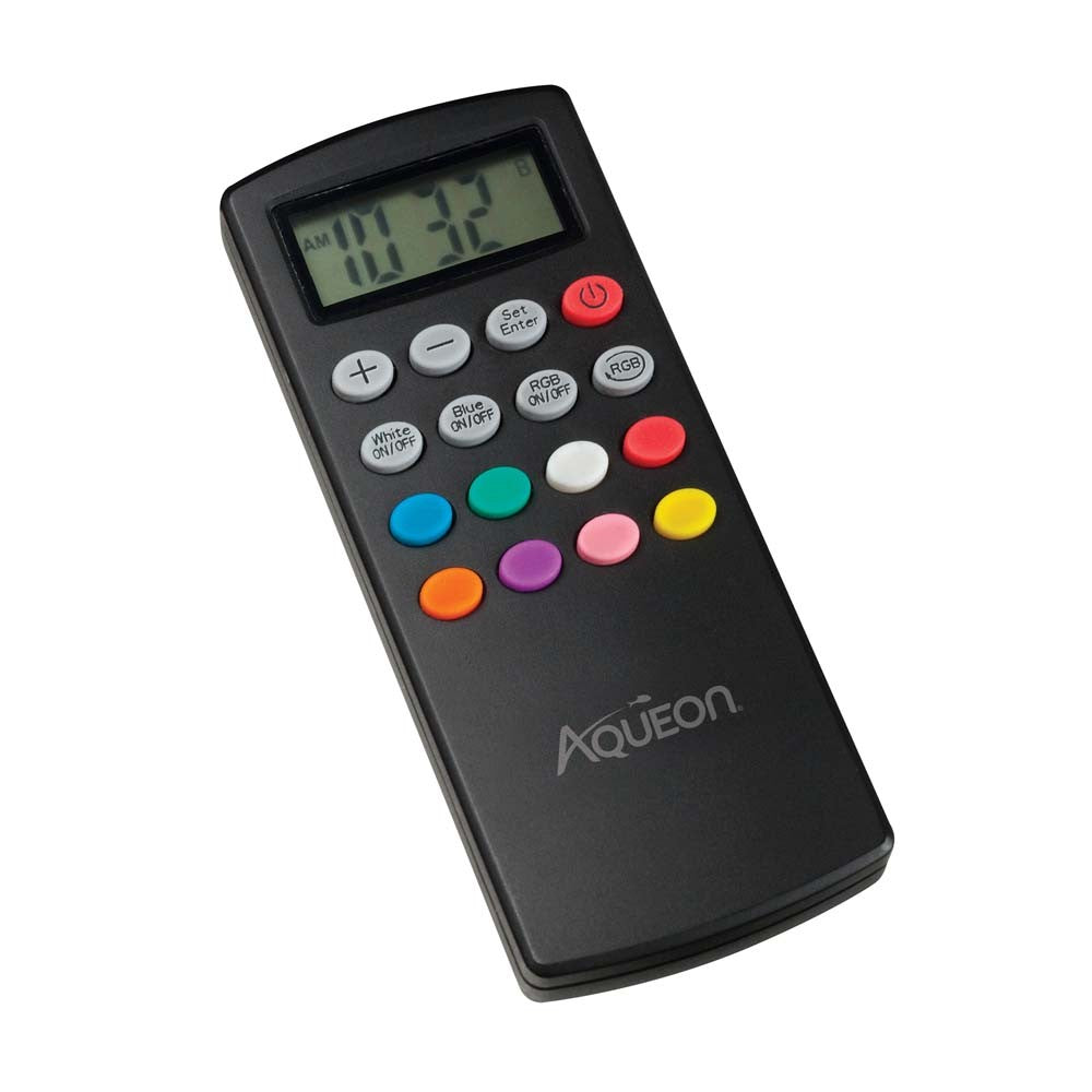 The Optibright MAX LED light is the next step up in the Aqueon line of static LED fixtures. It maintains the easy to use RF remote control for complete customization but is now packed with bright LED's for the best view of aquatic inhabitants. Optimal light for freshwater or saltwater fish and low-medium light level plants. Bright LED lighting- White, Blue Moon Glow and color-enhancing RGB LED's. RF Remote Control, set a 24 hour timer for white, blue and RGB LED's individually. You can choose between 8 preset colors for quick customization, and have a dimming capability in 10% increments. Automatic 30 min ramp times to reflect a gradual sunrise and sunset environment. Low profile with adjustable legs to fit multiple aquarium lengths. Includes 2 AAA batteries for RF remote control.