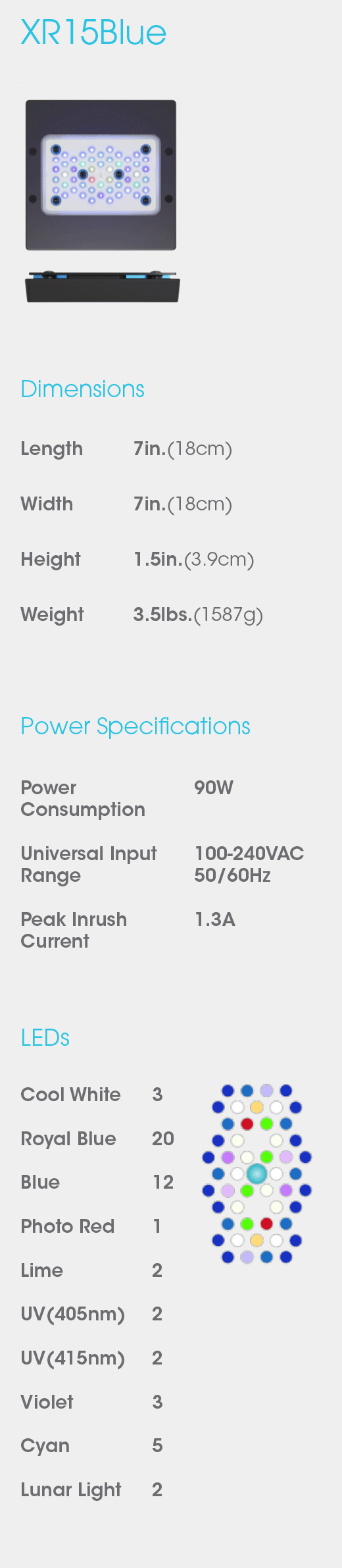 - Optimized LED Placement - Geometric LED placement produces a wide but even PAR distribution and a balanced intensity to reduce hot-spots and benefit coral health.