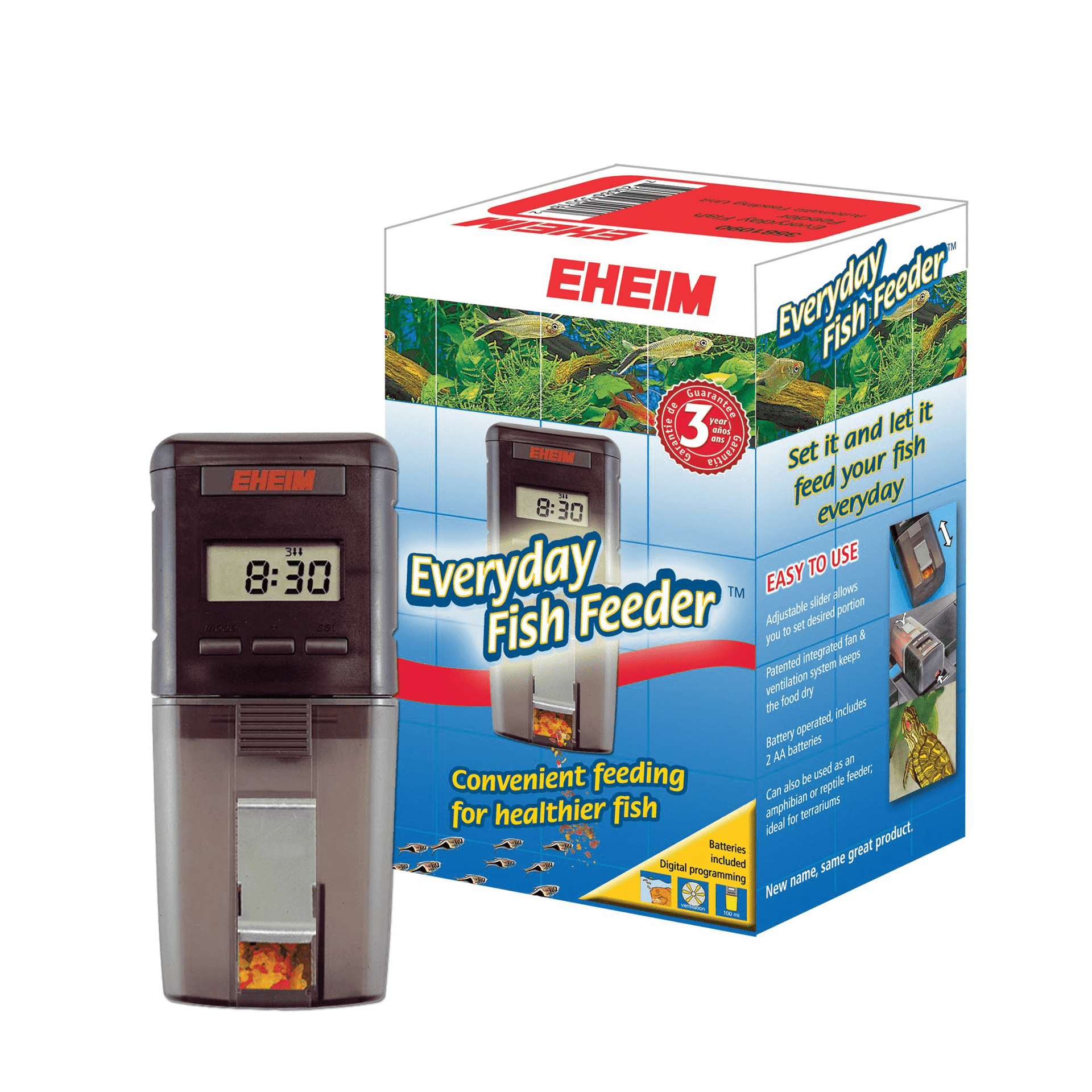 Everyday Fish Feeder If you don’t always have time an automatic fish feeder is ideal. Also when on holiday. You can easily program the feeding times as well as the amount of food and the fish feeder ventilates the food at precisely the correct doing time into the water. With a simple press of a button “snacks” are also possible at any time. The function keys are splash proof. A warning system quickly shows low battery level.