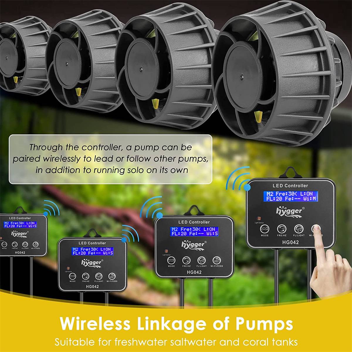The wavemaker pump can run solo on its own or can be paired wirelessly to lead or follow other wavemaker pumps through the controller. The lead pump synchronously controls the following pumps through wireless transmission instructions to realize the combined use of multiple pumps.