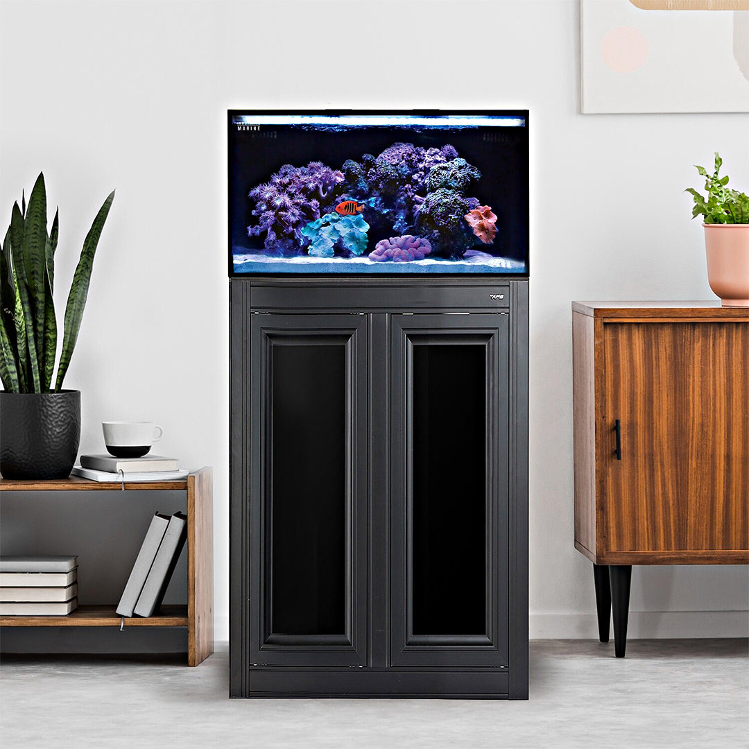 Build a welcoming environment with the most advanced AIO (All in one) aquarium in its class. Expanding on the safety features of our award-winning aquariums, the Fusion Pro 2 Series comes standard with a built-in emergency overflow, adjustable water level risers, leveling mat and safe screen lid. These desktop nano sized aquariums for saltwater or freshwater make the hobby easy with customizable dual return nozzles, controllable DC return pump and essential filter media inside a custom caddy all neatly hidden behind the filter wall. This true AIO kit has raised the bar on what comes standard.