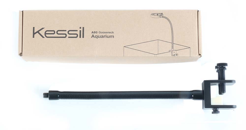 It is a versatile mounting option that allows you to customize the positioning of your light. Designed to be used on most aquariums; glass or acrylic. The Gooseneck is 10 inches long and is malleable but sturdy. The arm provides a strong, adaptable solution to install your Kessil aquarium light.