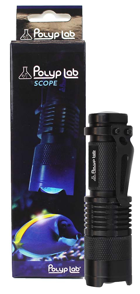 The Scope`s single chip LED emits an adjustable beam of blue light that will illuminate coral or invertebrates colors not visible with your day lighting, and help inspect for pests in the cover of darkness.