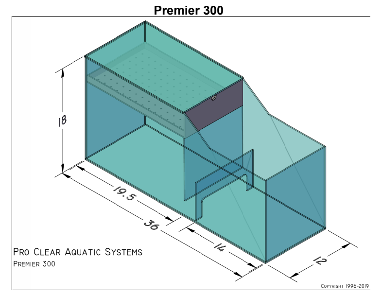 Pro Clear Aquatics Premier Model 300 Wet/Dry - 36"X12"X18" - No Overflow