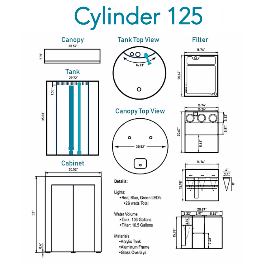 Pro Clear Procylinder 125 Acrylic Cylinder Aquarium w/ Pump, Lights & Filter - White