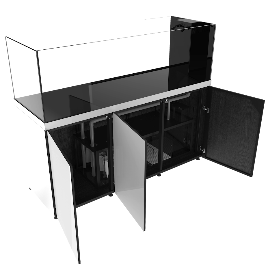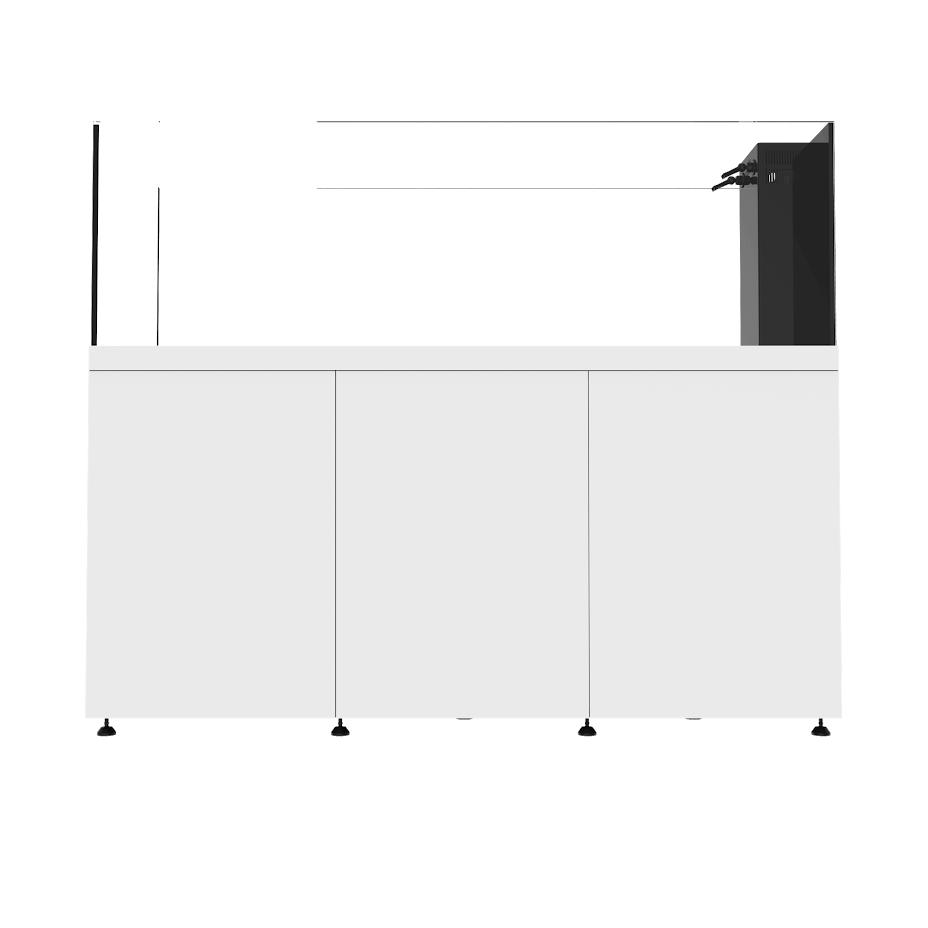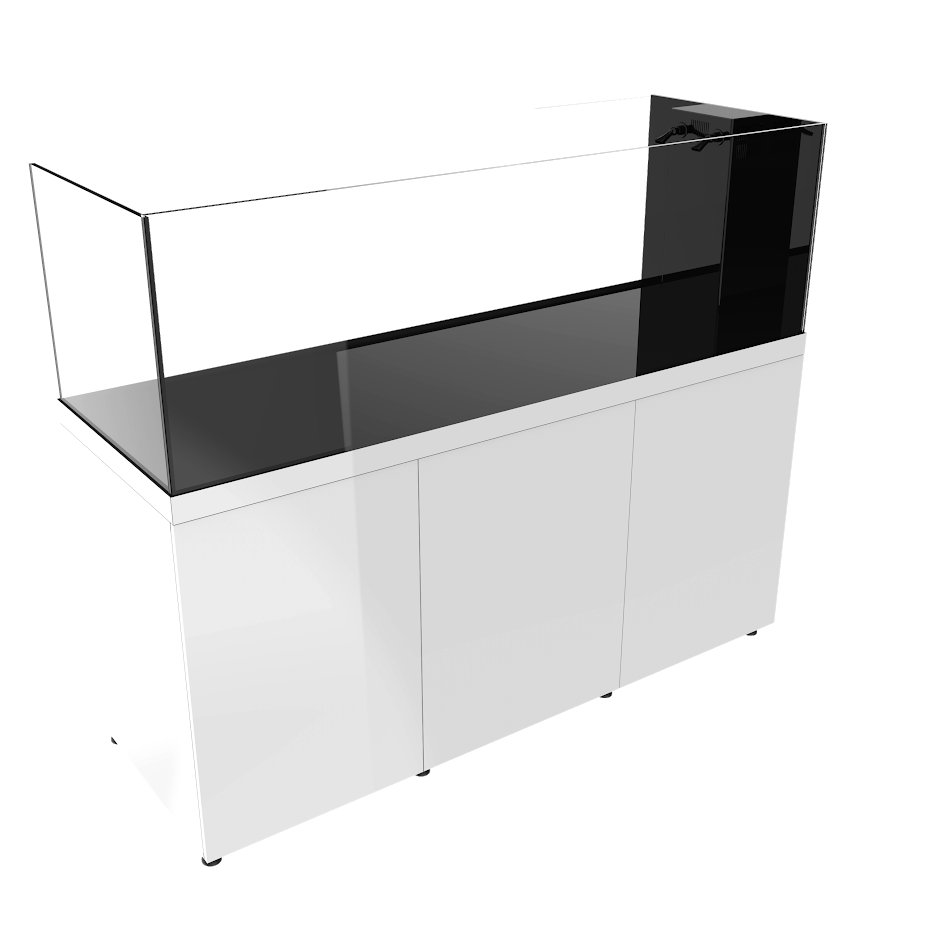 Hobby-friendly peninsula style aquarium system loaded with high-end features without the premium price tag. The 230 Gallon ProStar Rimless Peninsula Aquarium with white cabinet stand from Pro Clear Aquatic Systems includes fundamental components for convenient set up of a beautiful freshwater, saltwater, or marine reef aquarium. Built-in overflow is oriented horizontally to maximize panoramic aquarium landscape views. Glass sump filtration system is paired with a gravity-fed ATO (Auto Top Off) system to help combat evaporation and ensure consistent water levels. Generously-sized glass sump filtration system allows for superior filtration and ample room for additional equipment including a protein skimmer. Pre-cut PVC plumbing assembly allows for easy installation.