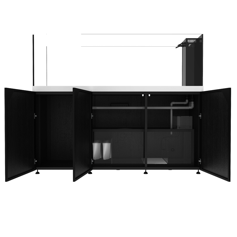 The Pro Clear 230 Gallon ProStar Rimless Peninsula Aquarium boasts high-clarity, low-iron glass with beveled edges for an exceptional aquarium viewing experience. Stylish aquarium cabinet stand in black with glass overlay doors exudes clean, modern aesthetics sure to complement most interiors. Lightweight and durable aluminum construction ensures long-lasting use.