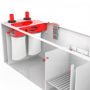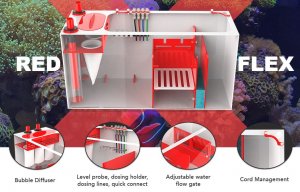 Each sump includes an overflow panel where the water can escape into the sump if your socks overflow. The Red Flex is equipped with a dosing, probe and wire holders, easily maintained by the built in fastener. The 4-in-1 has its own Chemical Media Canal for the media of your choice. Within the canal you have the option to use our unique Chemical Media Cartridges specifically designed for this area to house various forms for media.