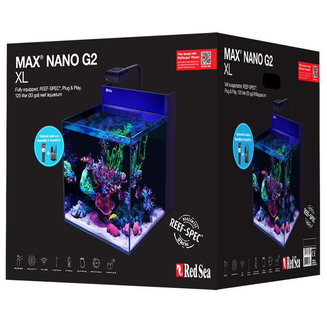 The all-new MAX NANO G2 XL comes with all the necessary equipment needed for a stunning home reef, sparing you from concerns over component selection or compatibility. It benefits from superior infrastructure, optimal water management, extra-fortified cabinets (optional), and 2 new G2 features: ReefATO+ and NanoMat-ready rear sumps. It has an elegant rimless design, with an 8mm, ultra-clear glass aquarium, and it incorporates the wi-fi connected ReefLED 50 LED light. The return pump and protein skimmer both connect to a conveniently located control panel to give you a quick and easy way to turn them off when it's time to feed or perform routine maintenance.