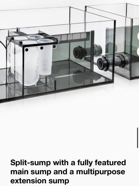 - Extension Sump - The extension sump can be used for a dedicated frag tank, a larger refugium, or simply for extra filtration. Alternatively, the extension sump can be disconnected from main sump, and used as an R/O reservoir or for saltwater changes.