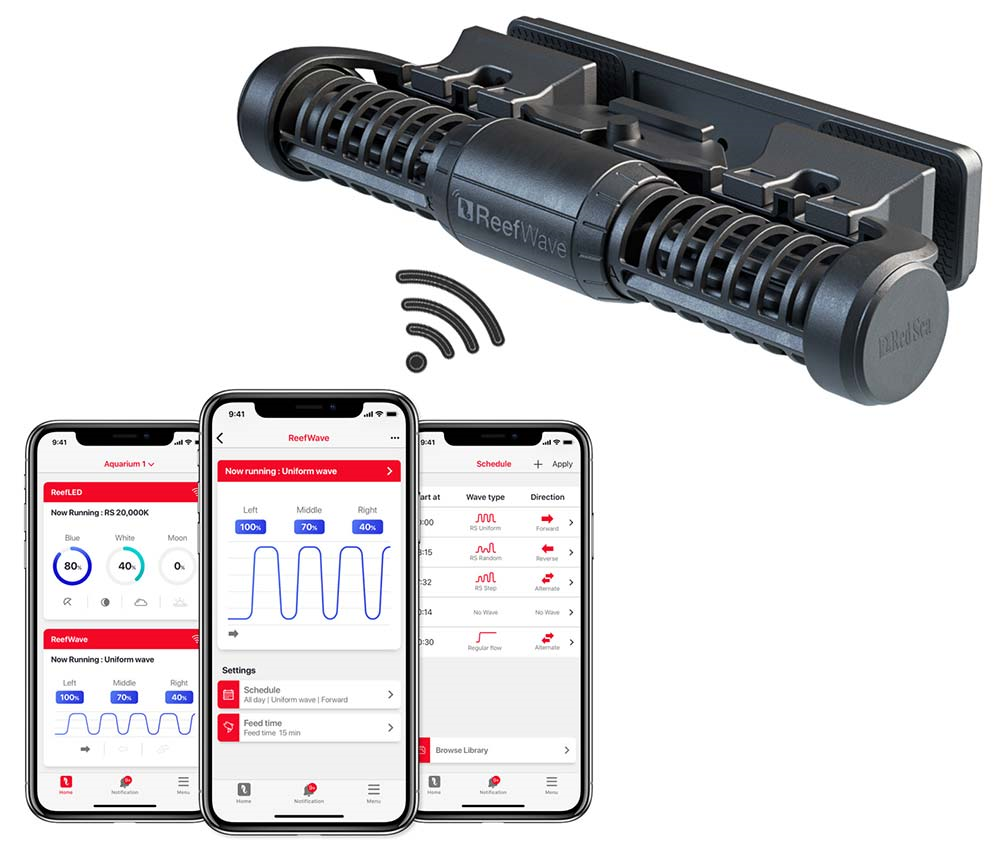 Each ReefWave pump can be controlled via the included controller module, or you can access your pumps through Red Sea's ReefBeat app via the built-in WiFi.
