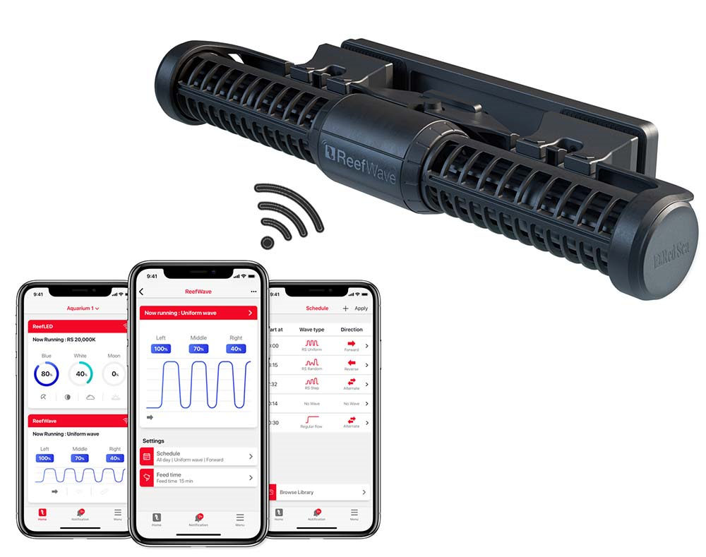 You can control each ReefWave pump locally through its own dedicated controller or remotely via the built-in Wi-Fi that connects easily to Red Sea’s ReefBeat app.