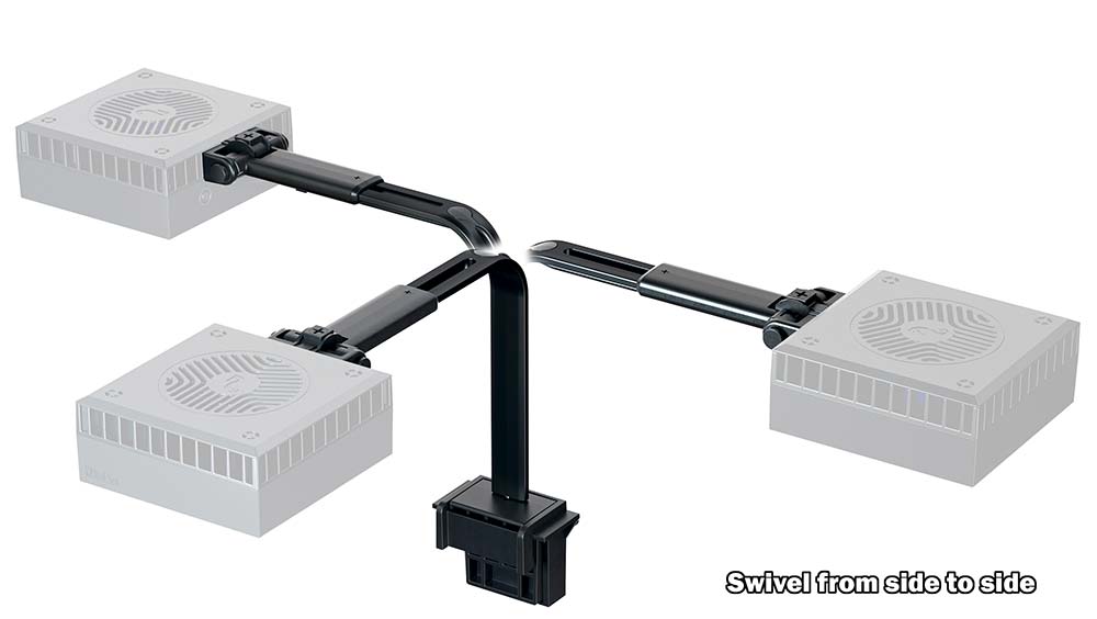ReefLED 50 Arms are universal mounts that securely attach onto the rear wall of the aquarium and can be rotated (side to side), allowing greater access to the aquarium for reefscaping or tank maintenance.