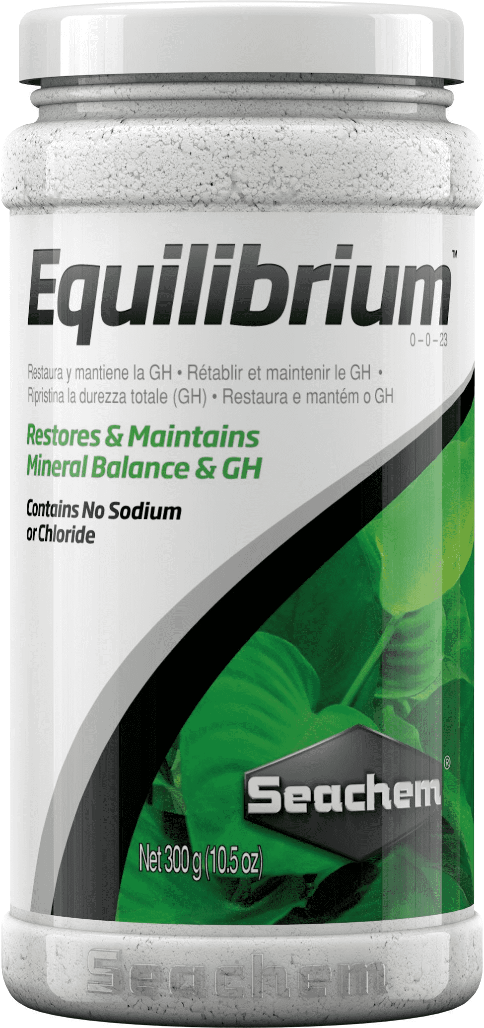 Equilibrium™ is specifically designed to establish the ideal mineral content for the planted aquarium. Equilibrium™ contains no sodium or chloride (which can be detrimental to a planted aquarium at elevated levels). Equilibrium™ is ideally suited for use with RO (reverse osmosis) or DI (deionized) water or any mineral deficient water. Equilibrium™ raises the essential mineral/electrolyte content (General Hardness) of the water to balance with and promote stability of the carbonate hardness.